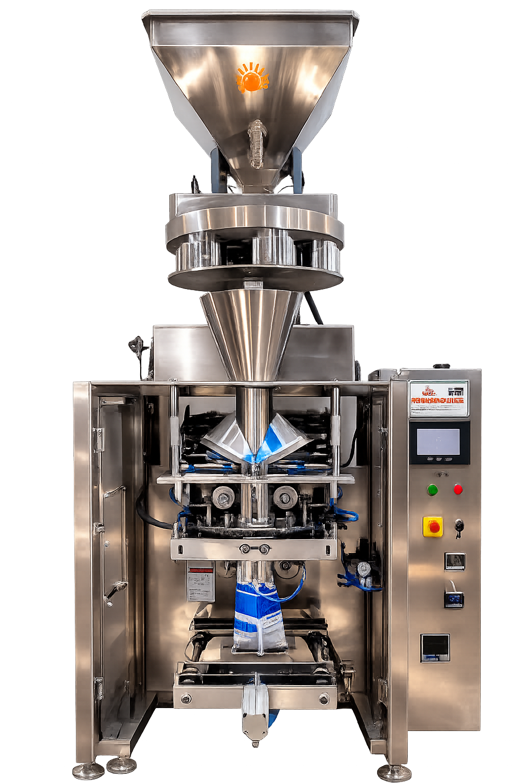 Perfect for packing products like grains, pulses, snacks, and powders in pouches.
