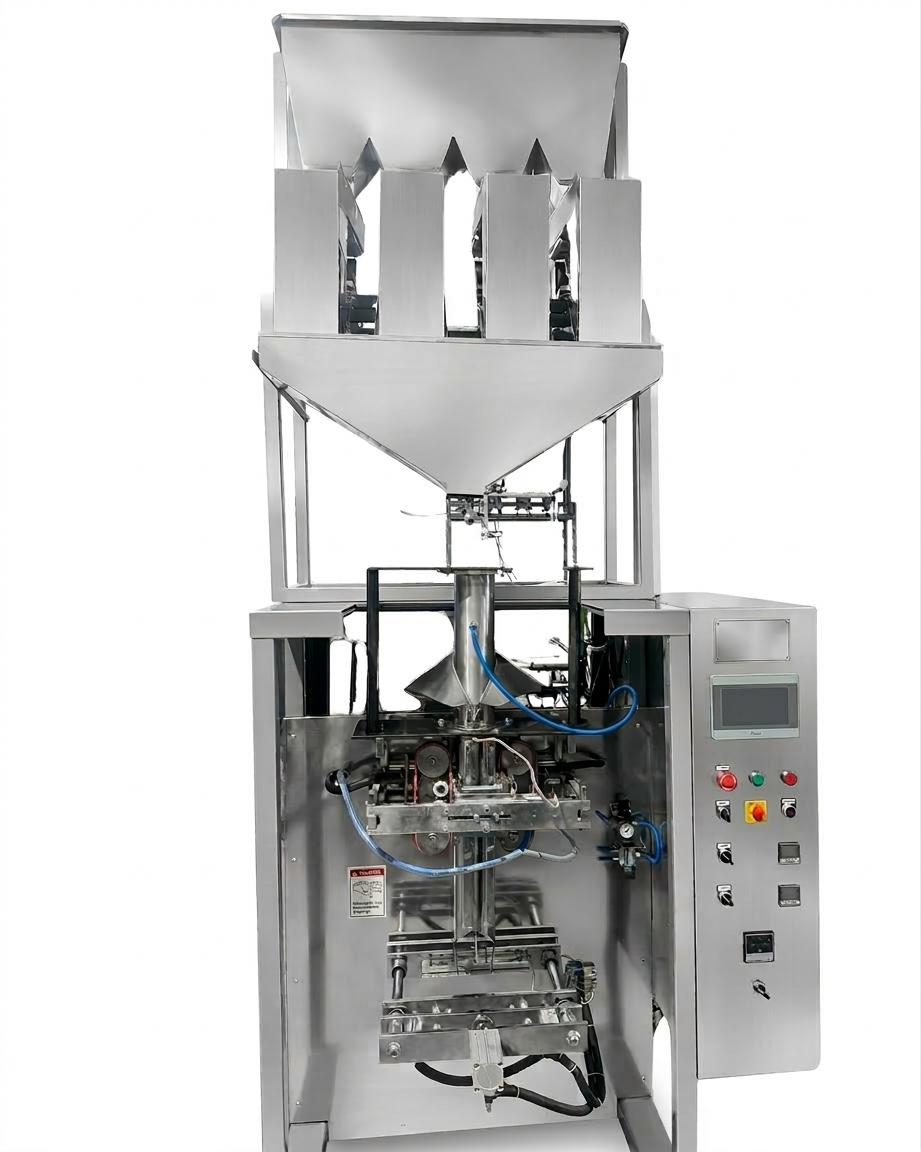 High-speed weighing and packaging solution for snacks, dry fruits, seeds, and granules.